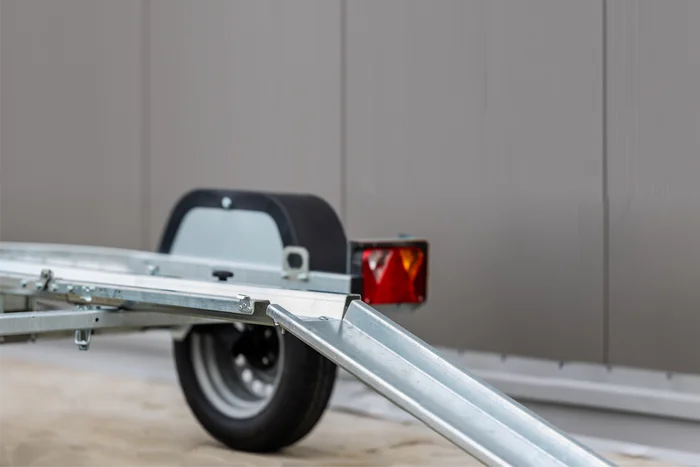 La remorque moto Unitrailer Rider 1 est équipée d’un cadre en acier galvanisé, un matériau résistant à la rouille et conçu pour durer dans le temps. Ce matériau offre une excellente solidité tout en conservant une légèreté appréciable pour un transport aisé. Le poids total de la remorque est optimisé pour offrir une charge utile maximale sans compromettre la stabilité.