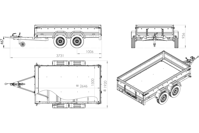 Remorque voiture Garden Trailer 200 FD avec timon fixe. PTAC jusqu’à 750 kg. Un essieu non freiné et suspendu sur des arbres de torsion. La ridelle arrière peut être ouvrable. Fabriqué en tôle galvanisée durable. 2 ans de garantie.